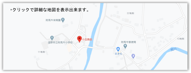 会社住所 〒028-0663岩手県遠野市附馬牛町下附馬牛11地割38-1